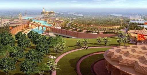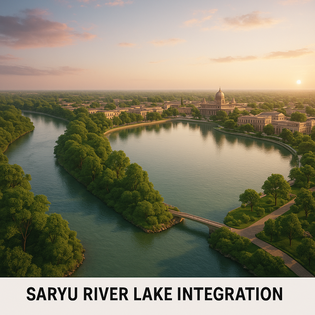 - Spiritual Integration: A grand lake filled with water from the holy Saryu River will serve as a central spiritual element, enhancing the township’s religious ambiance.